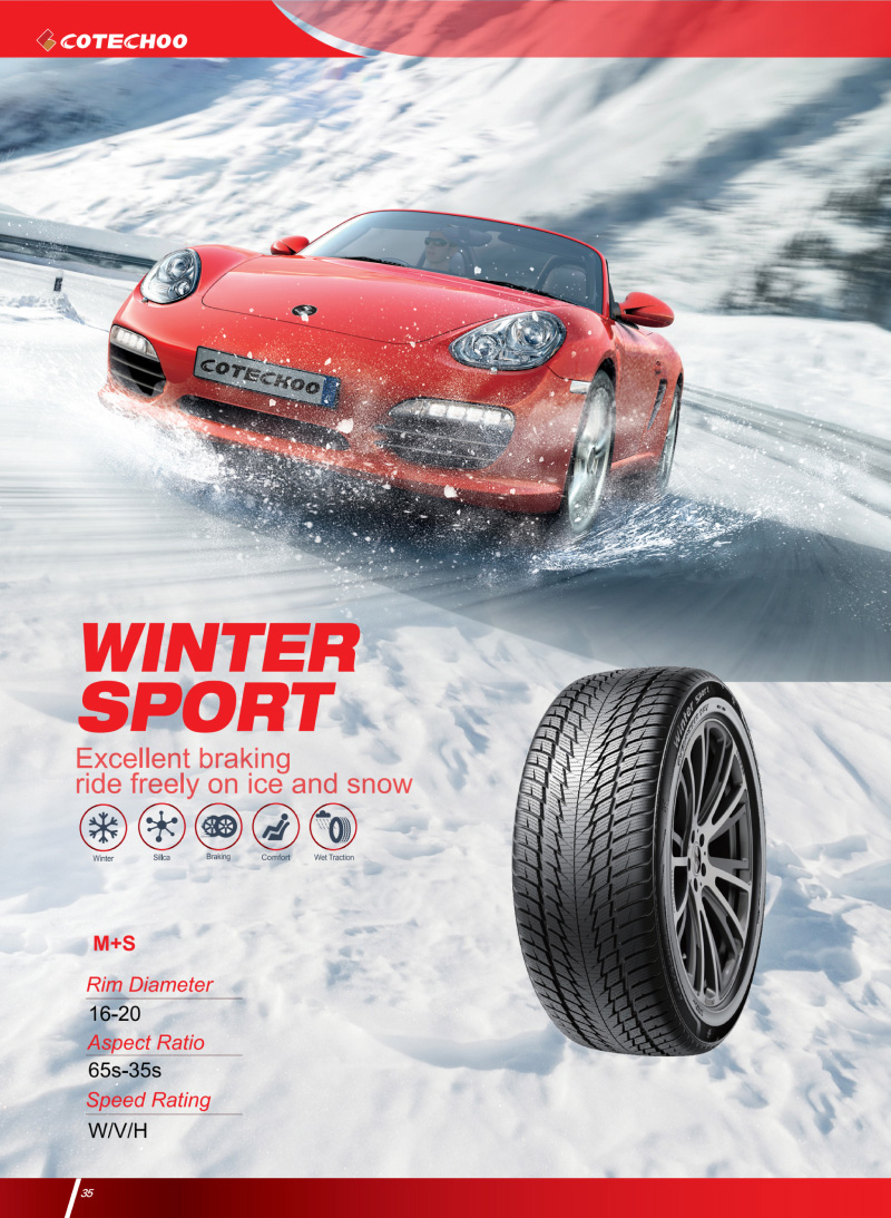 獨(dú)特胎面膠料配方及花紋,為輪胎提供良好的牽引力和制動(dòng)性能,可保證在冬季氣候下的駕駛安全性能。
