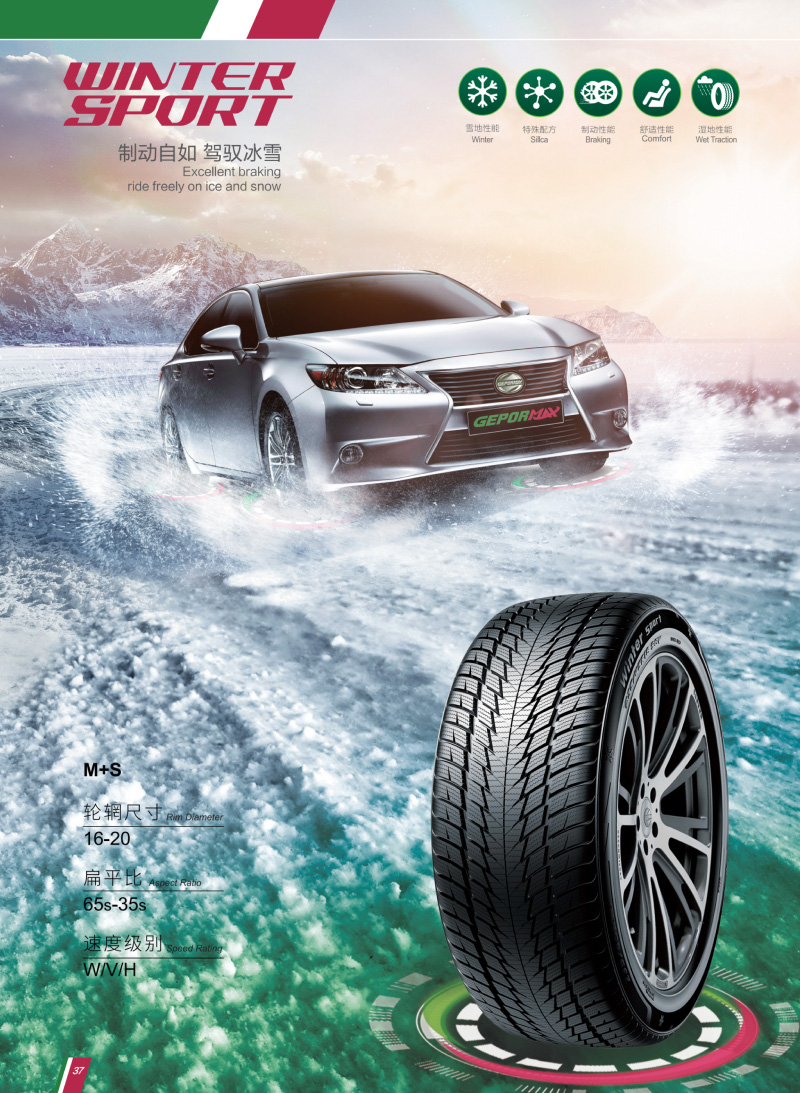 WINTER SPORT 獨(dú)特胎面膠料配方及花紋,為輪胎提供良好的牽引力和制動(dòng)性能,可保證在冬季氣候下的駕駛安全性能。